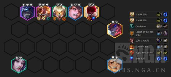 2、贾克斯:为贾克斯选择半肉半输出装备,如三相之力、破败王者之刃等,提高他的生存能力和输出能力。