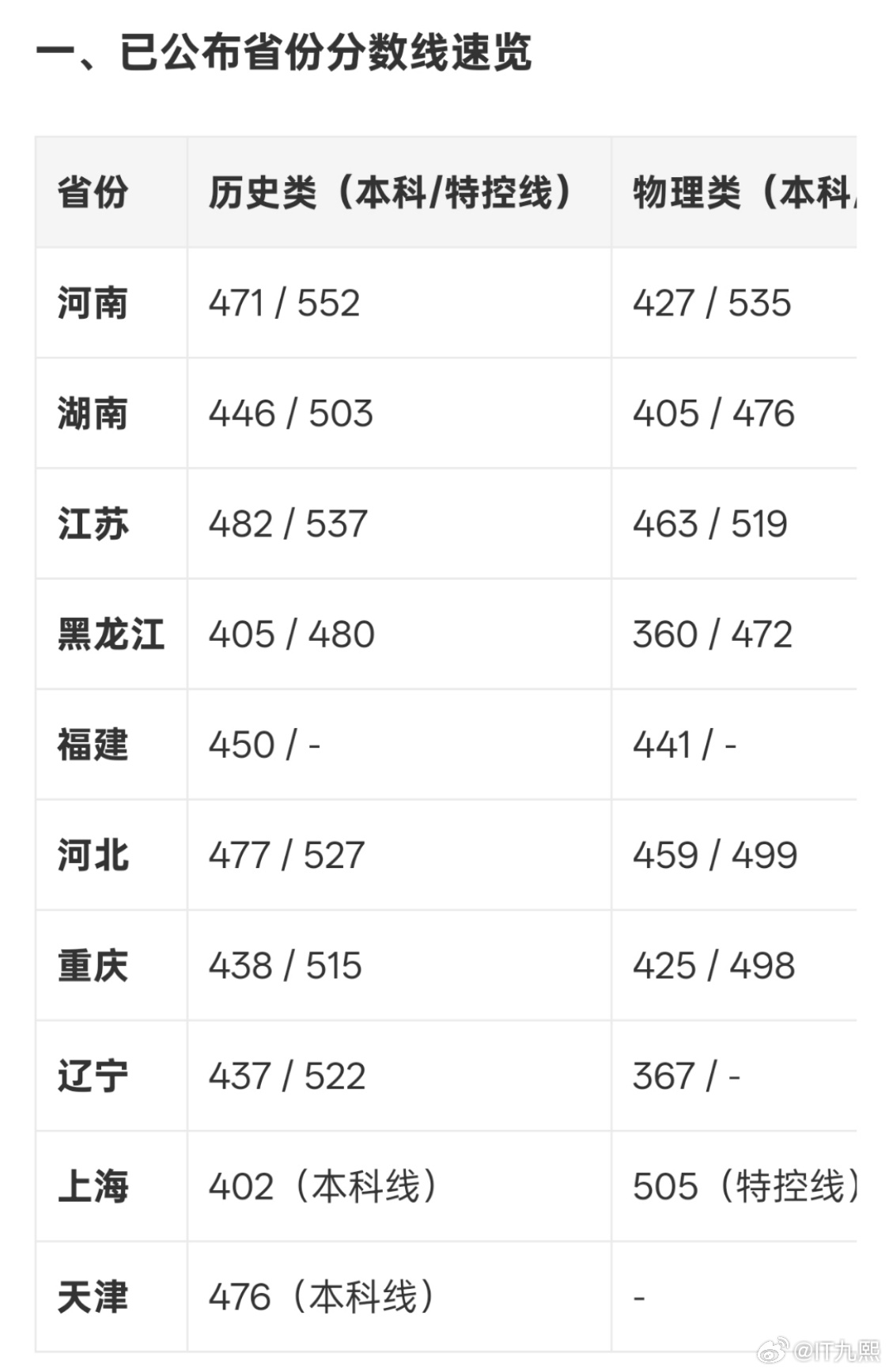 各省最新分数线